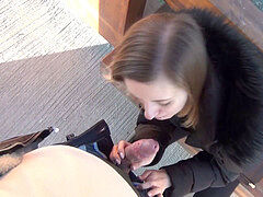 Super blonde mild gives blowjob all the